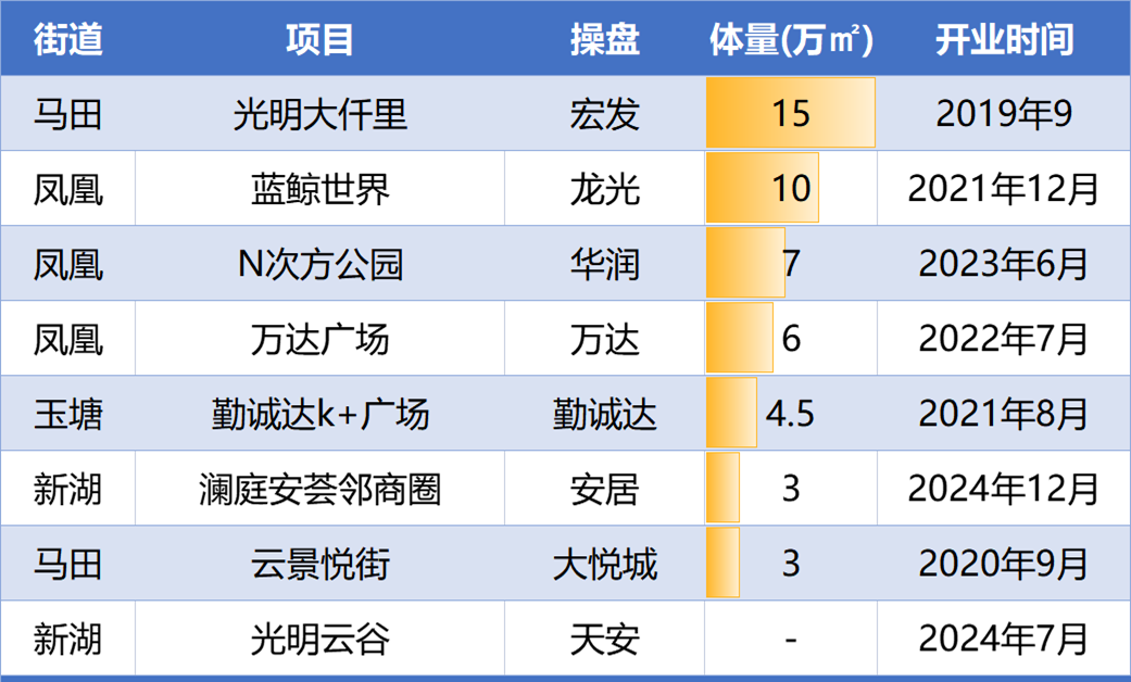 回顾来看九游体育,光明全区商业体量已经突破100万㎡,其中,超过3万㎡的商业体至少有8个。