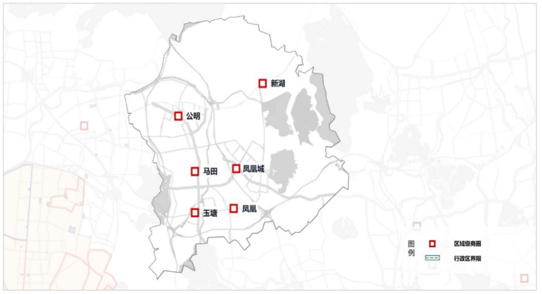 结合深圳商业网点规划来看,还有新湖-光明云谷商圈、马田-润宏城商圈,以及玉塘-勤诚达商圈等商圈。